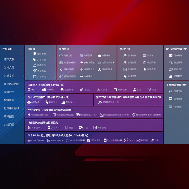 医疗器械产品上市前,,,要熟悉严格与繁复评审标准,,,,整理分析监管机构指导文件中的海量信息。。。。企业急需一个智能化解决方案,,,,提升知识管理效率,,,提高评审通过率,,以提升其市场竞争力。。。